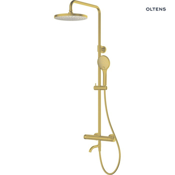 Oltens Vatten Numa zestaw wannowo-prysznicowy z baterią termostatyczną i deszczownicą złoty połysk 36507800