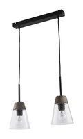 DOMINO nowoczesny zwis 2-ramienny klosz przezroczysty drewno antracyt 1679